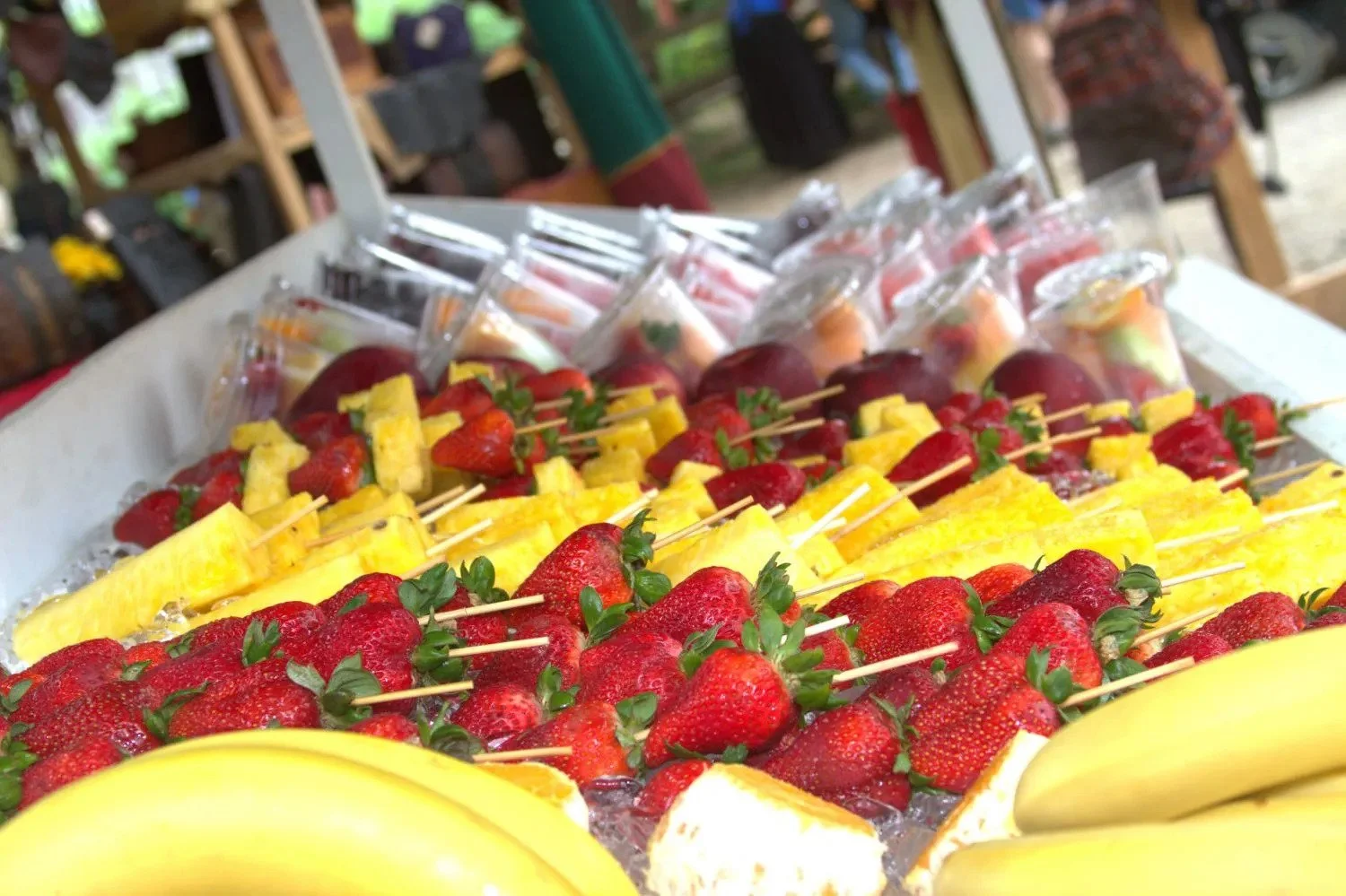 The Festival has 5 food court areas across the ground. Additionally, there is also a full-service restaurant on site, the Rose & Crown Inn, located in the Crown Meadows section of the festival. There are a multitude of food options to choose from including fish & chips, Scottish eggs, crab cakes, Shepherdβs pie, giant roasted turkey legs, fresh fruit, breads and pastries, street tacos and more. For a complete list of foods and where they are located, click HERE.